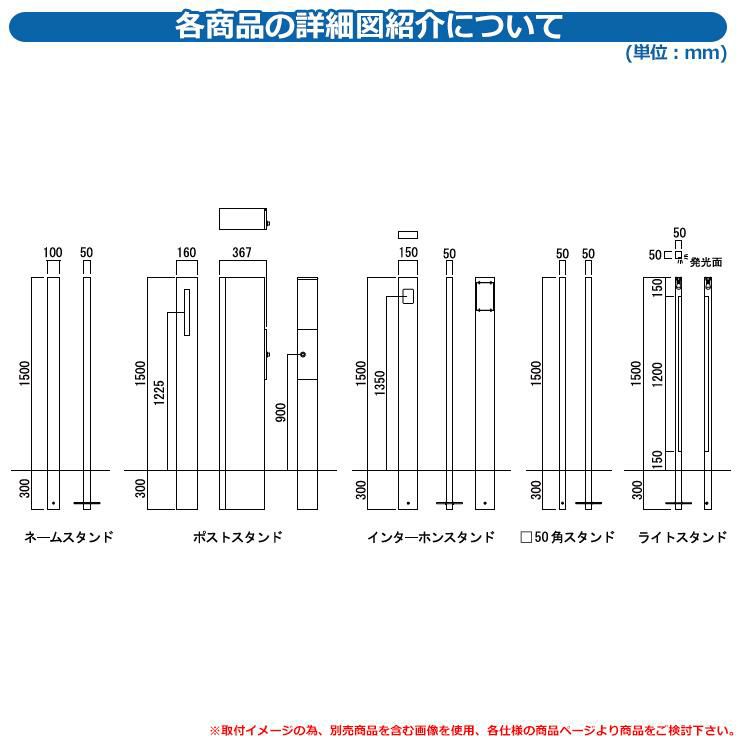 デザインポストユニット 1型 照明なし本体 T12型ポスト セット 前入れ前出し