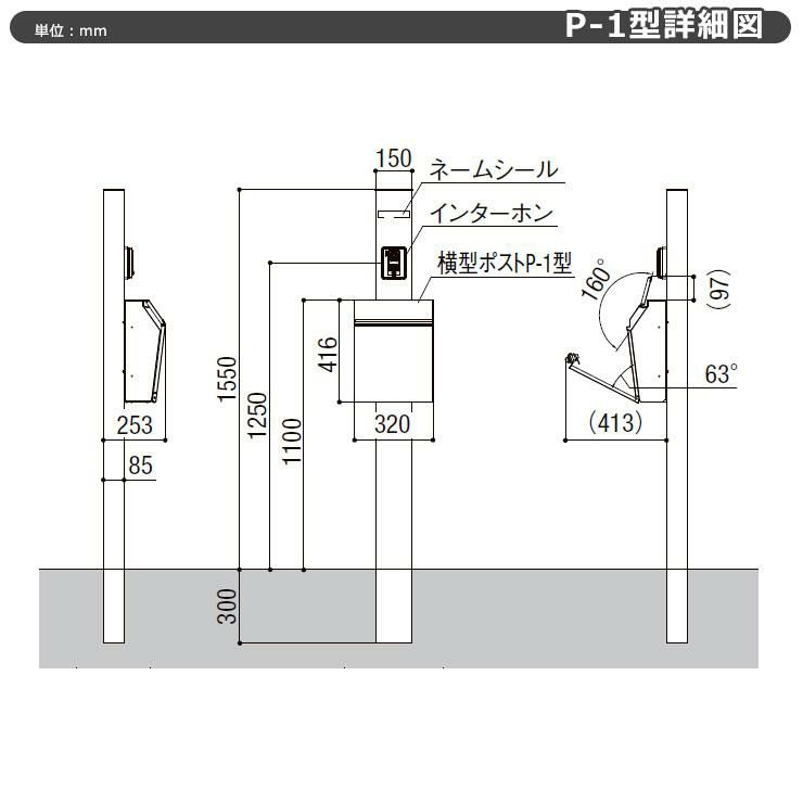 デザインポストユニット 1型 照明なし本体 T14型ポスト(簡易錠) セット 上入れ横出し