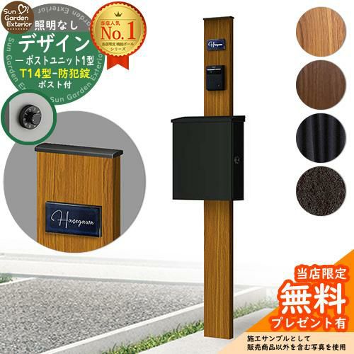 デザインポストユニット 1型 照明なし本体 T14型ポスト(防犯錠) セット 上入れ横出し