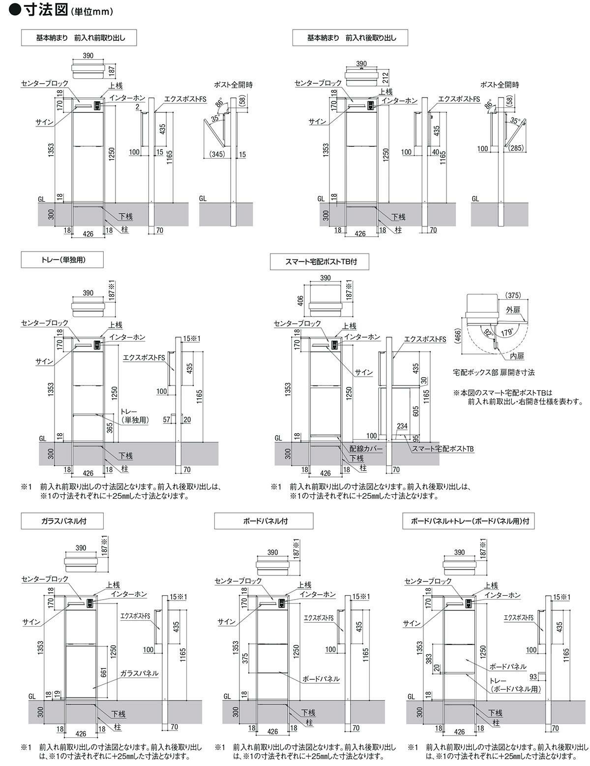 門柱+ポスト前出し+単独用トレー