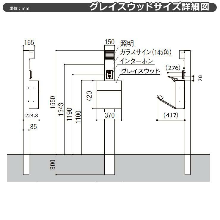 柱(形材色)+ポスト+アクリル表札(照明無し)