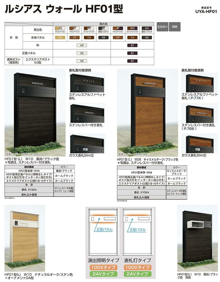 機能門柱 ルシアスウォール HF01型 W10 表札灯タイプ(100V照明)