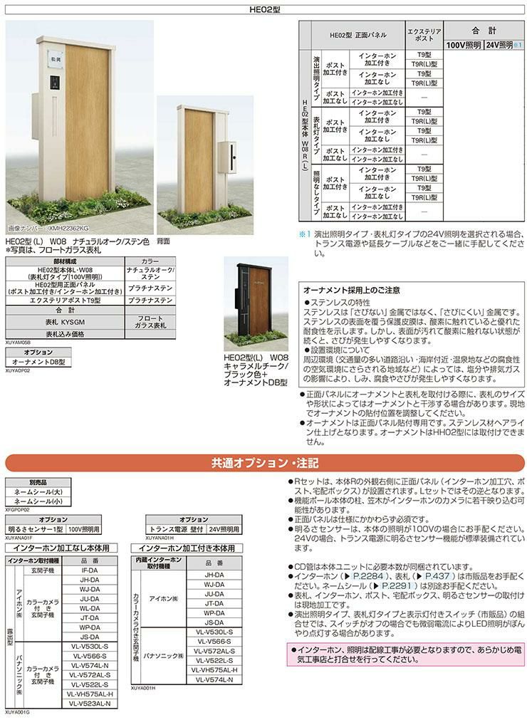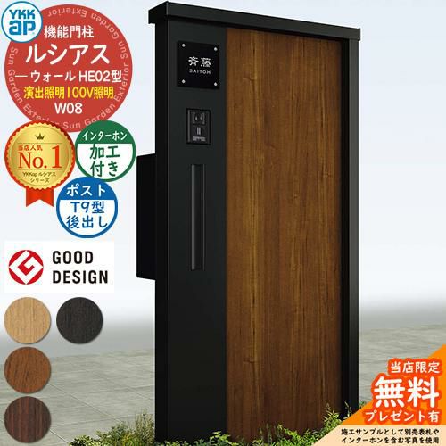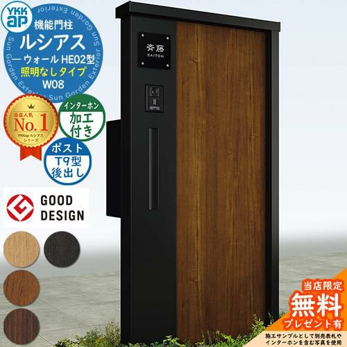 機能門柱 ルシアスウォール HE02型 W08 表札灯タイプ(100V照明)