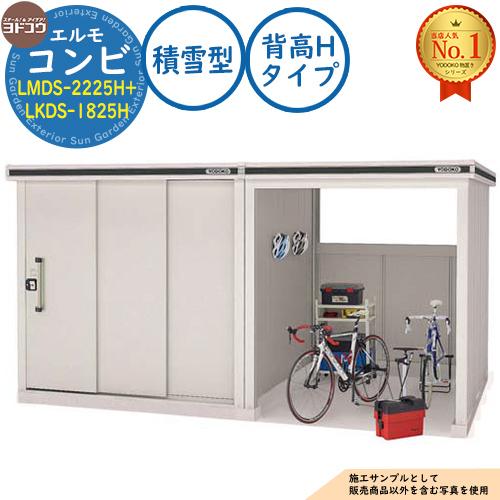 エルモ コンビ 中・大型物置 LMDS-2225H+LKDS-1825H 背高Hタイプ 積雪型 間口4077.5×奥行2563.5×高さ2355.5
