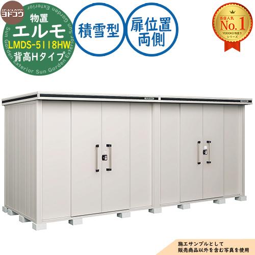 物置 屋外 収納 エルモ 中・大型物置 LMDS-5118HW 連結タイプ センター引き分け戸 背高Hタイプ 扉位置:両側 積雪型 間口5129×奥行1863×高さ2359
