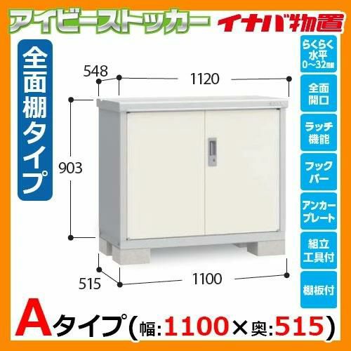 分類 【ガーデン収納】【イナバ物置】【アイビーストッカーBJX】【Aタイプ】【間口1100】【奥行515】【全面棚タイプ】【稲葉製作所】