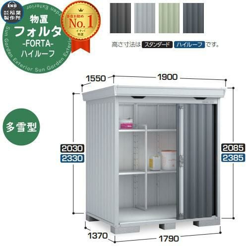 フォルタ 中型物置 FS-1814H ハイルーフ 多雪型 幅1790×奥行1370×高さ2385