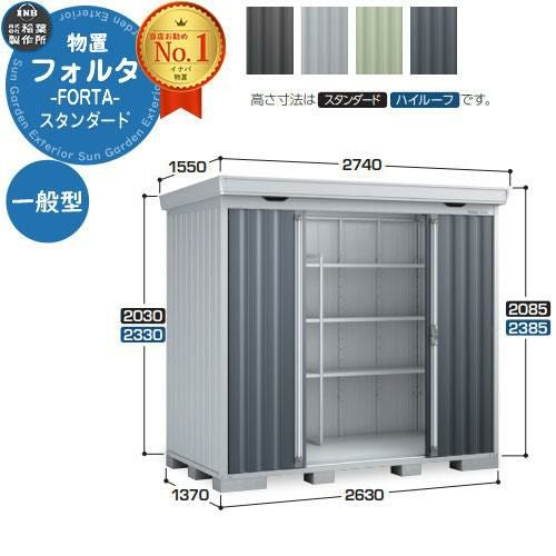 フォルタ 中型物置 FS-2614S スタンダード 一般型 幅2630×奥行1370×高さ2085