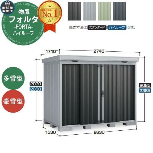 フォルタ 中型物置 FS-2615H ハイルーフ 多雪型・豪雪型 幅2630×奥行1530×高さ2385