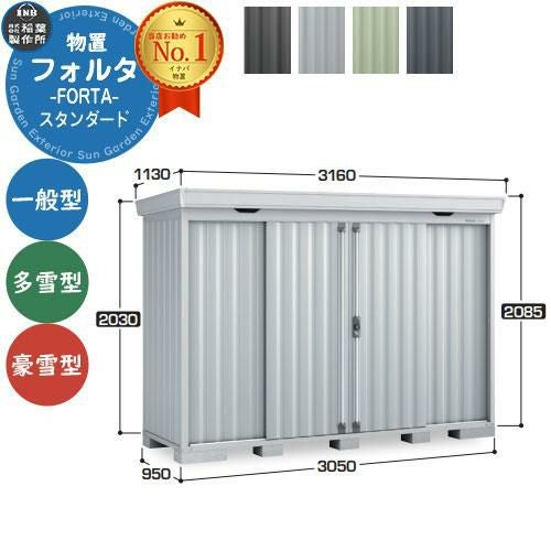 フォルタ 中型物置 FS-3009S スタンダード 一般型・多雪型・豪雪型 幅3050×奥行950×高さ2085