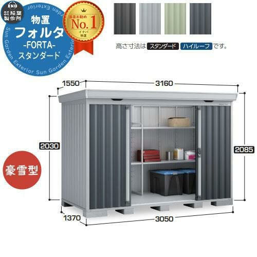 フォルタ 中型物置 FS-3014S スタンダード 豪雪型 幅3050×奥行1370×高さ2085