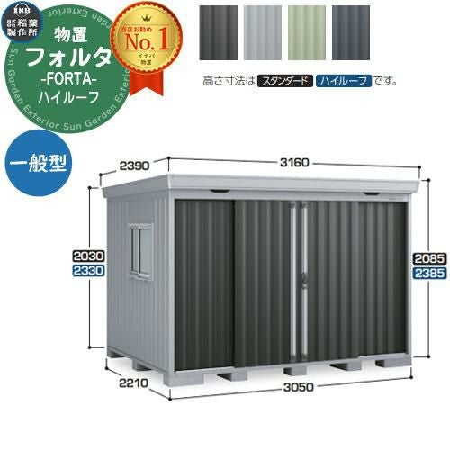 フォルタ 中型物置 FS-3022H ハイルーフ 一般型 幅3050×奥行2210×高さ2385