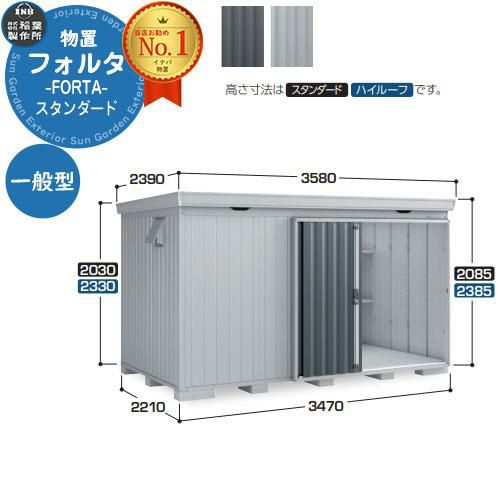 フォルタ 中型物置 FS-3522S スタンダード 一般型 幅3470×奥行2210×高さ2085