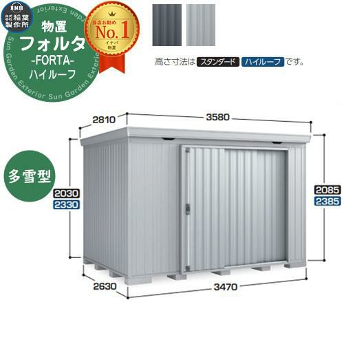 フォルタ 中型物置 FS-3526H ハイルーフ 多雪型 幅3470×奥行2630×高さ2385
