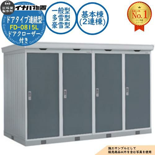 連続型物置 フォルタ ドアタイプ連続型 FD-0815L 基本棟(2連棟) ドアクローザー付き 一般型・多雪型・豪雪型 幅1640×奥行1530×高さ2085