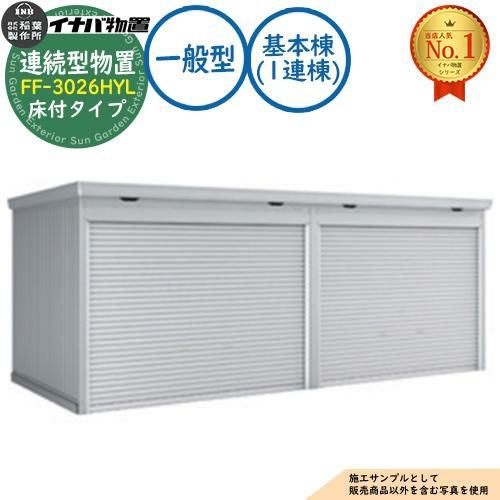 セット内容 ■連続型物置 ドマール シャッタータイプ連続型 FF-3026HYL 床付タイプ 基本棟(1連棟) 一般型 幅3050×奥行2630×高さ2385