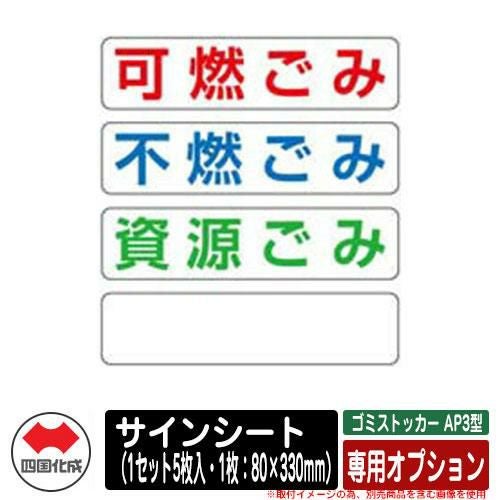 セット内容 ■ゴミストッカー AP3型 専用オプション サインシート(1セット5枚入・1枚:80×330mm) 品番:GS-OPS