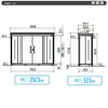 サイズ 最大幅3008×高2120×奥行1017 土台部間口2923×奥行923×開口高1860mm 容量3600L 床面積0.82坪