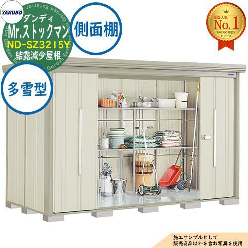 セット内容 ■Mr.ストックマン ダンディ 中・大型物置 ND-SZ3215Y 結露減少屋根 側面棚タイプ 多雪型 間口3232×奥行1590×高さ2110