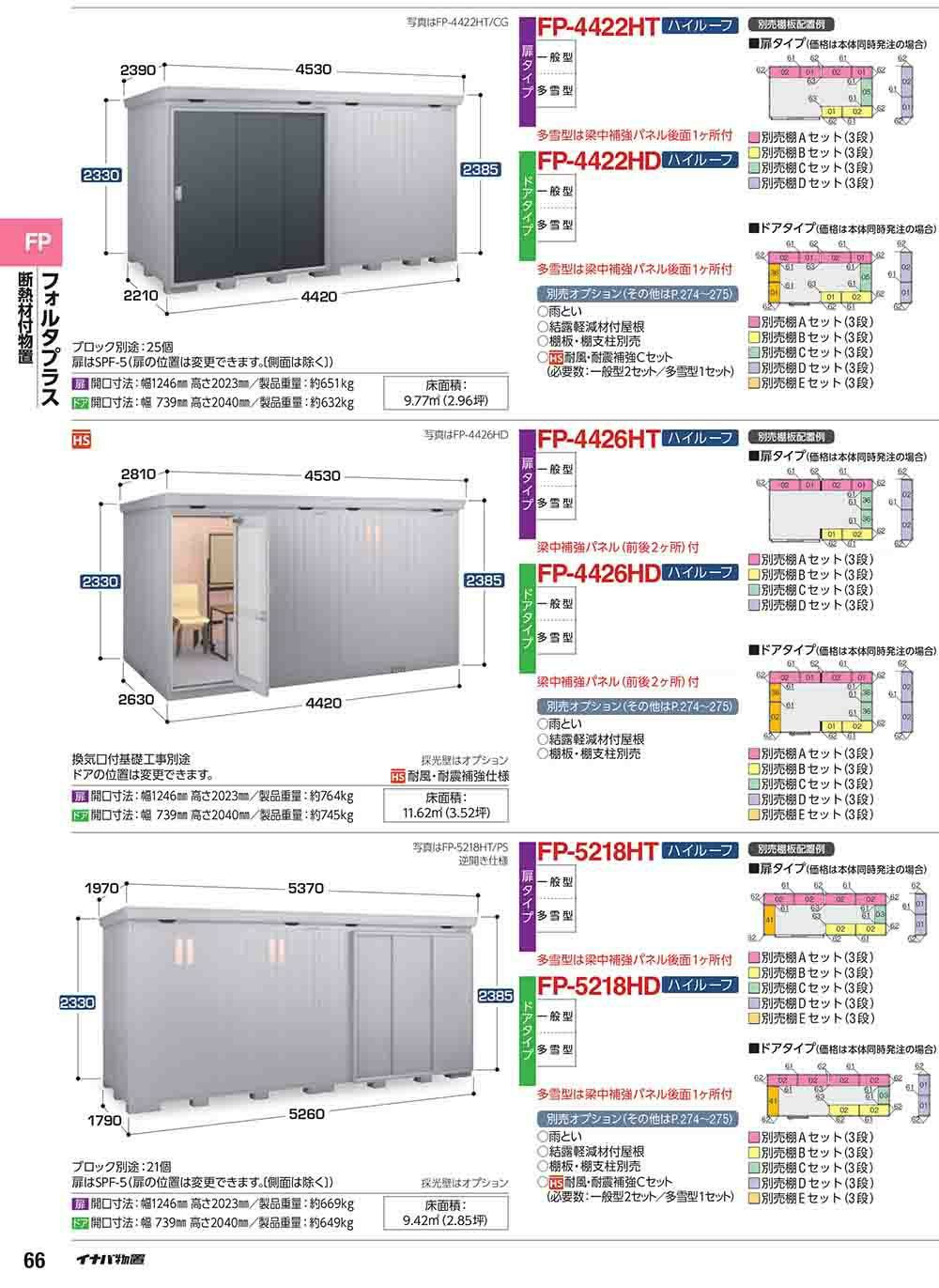 フォルタプラス 断熱材付物置 FP-4426HT(扉タイプ) ハイルーフ 多雪型 幅4420×奥行2630×高さ2385