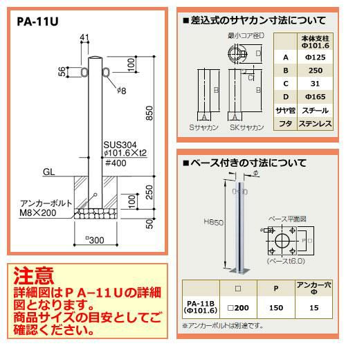●PA-11U:基礎に本体を直接固定する、空間区切り用のピラーです。