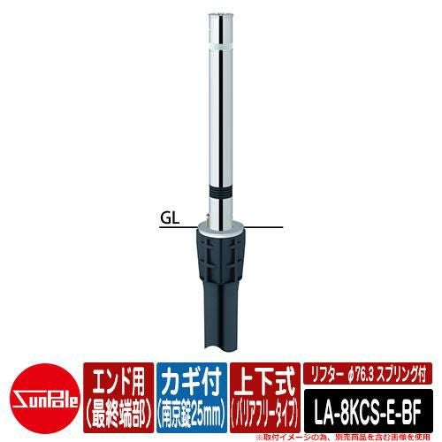 セット内容 ■リフター φ76.3 ステンレス製 スプリング付 上下式( バリアフリータイプ) カギ付(南京錠25mm) エンド用(最終端部)品番:LA-8KCS-E-BF