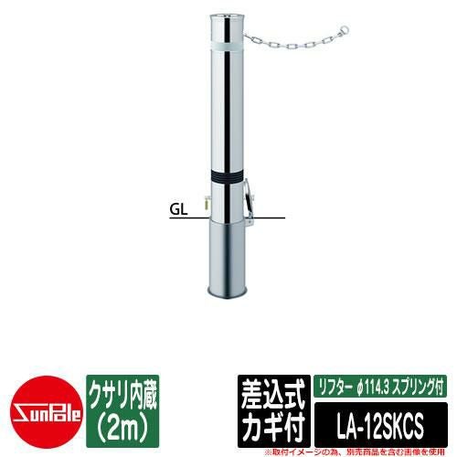 リフター φ114.3 ステンレス製 スプリング付 差込式カギ付 クサリ内蔵(2m)品番:LA-12SKCS