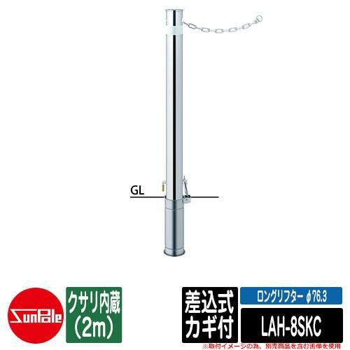 ロングリフター φ76.3 ステンレス製 差込式カギ付 H850 クサリ内蔵(2m)品番:LAH-8SKC