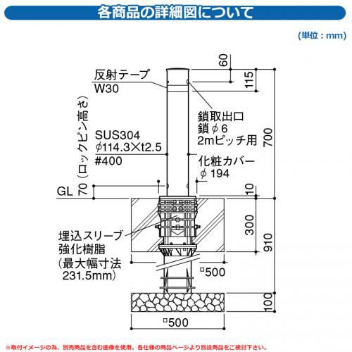 シンプルポストユニット 1型 照明なし本体 T13型ポスト(簡易錠) セット 上入れ前出し