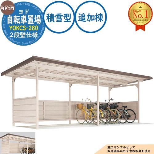 ヨド自転車置場 YOKCS-280 追加棟 YOKCタイプ (2段壁仕様) 積雪型 間口2800×奥行1800×高さ2198