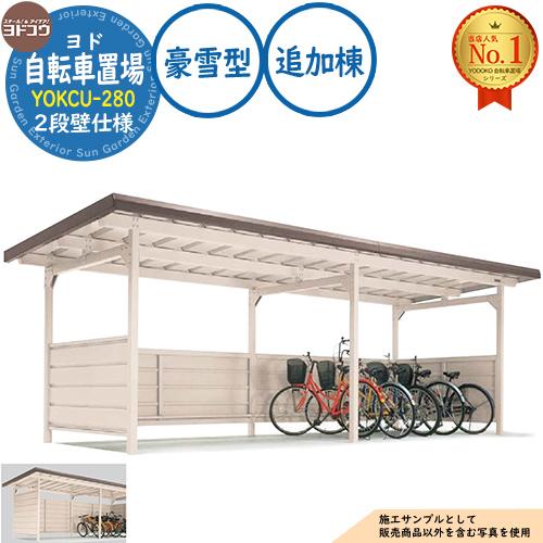 ヨド自転車置場 YOKCU-280 追加棟 YOKCタイプ (2段壁仕様) 豪雪型 間口2800×奥行1800×高さ2198