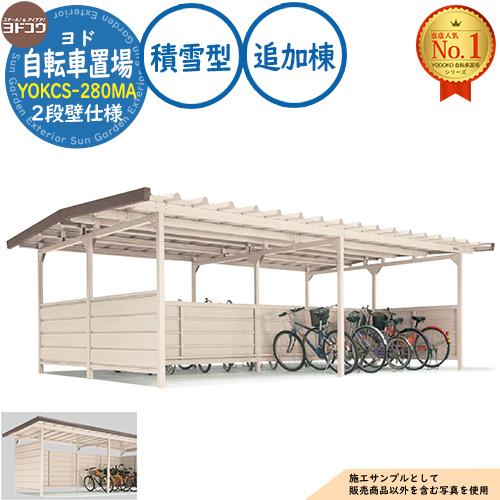 ヨド自転車置場 YOKCS-280MA 追加棟 YOKCタイプ棟合せ型 (2段壁仕様) 積雪型 間口2800×奥行3600×高さ2198