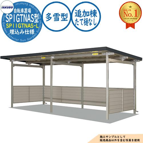 物置 屋外 収納 自転車置場上屋 SP1GTNAS型 (腰板1段) SP11GTNAS-L 埋込み仕様 追加棟 (たて樋なし) 収容目安4台 多雪型 間口2100×奥行2529×高さ2241
