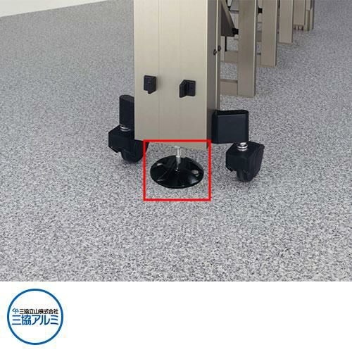 タフゲートのオプションです。横風の影響を抑えます。転倒防止金具はダブルキャスターの設置場所のみ取付け可能です。ガイドレールタイプの場合、転倒防止金具は使用出来ません。