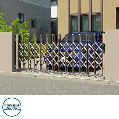 三協アルミ エアリーナ2 片開きタイプ ノンキャスター 28S H14 木調色 カーゲート 伸縮門扉 伸縮ゲート カーテンゲート アコーディオン門扉