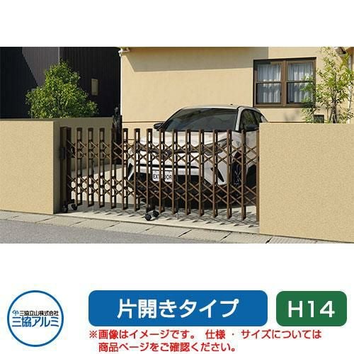 三協アルミ クロスゲートH 上下2クロスタイプ 片開きタイプ 37S H14 キャスタータイプ カーゲート 伸縮門扉 伸縮ゲート カーテンゲート アコーディオン