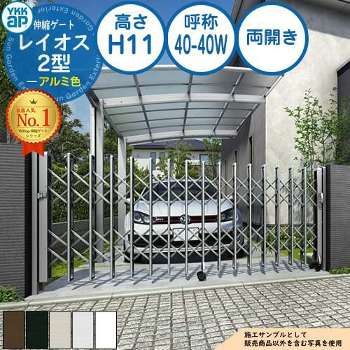 伸縮門扉 カーテンゲート 伸縮ゲート レイオス 2型 デュアルパンタタイプ 両開き アルミ色 H11 呼称:40-40W