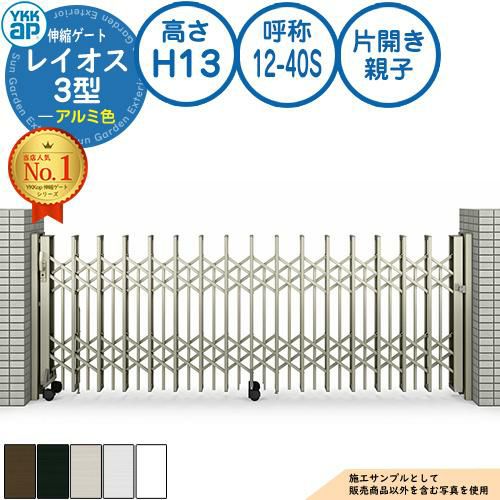 伸縮門扉 カーテンゲート 伸縮ゲート レイオス 3型 ペットガードタイプ 片開き親子 アルミ色 H13 呼称:12-40S
