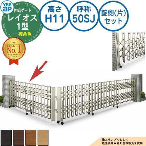 伸縮門扉 カーテンゲート 伸縮ゲート レイオス 1型 トリプルパンタタイプ 錠側(片)セット 複合色 H11 呼称:50SJ