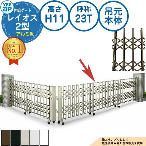伸縮門扉 カーテンゲート 伸縮ゲート レイオス 2型 デュアルパンタタイプ 吊元本体 アルミ色 H11 呼称:23T