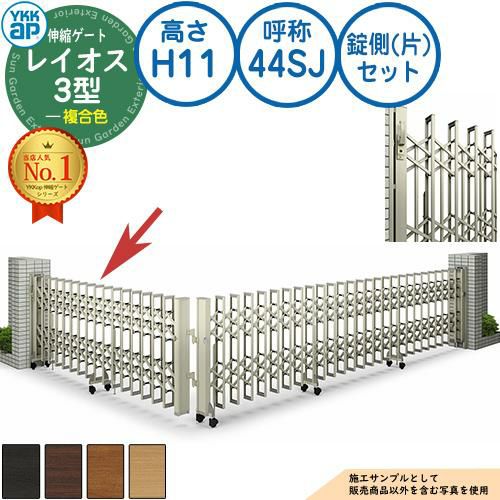 伸縮門扉 カーテンゲート 伸縮ゲート レイオス 3型 ペットガードタイプ 錠側(片)セット 複合色 H11 呼称:44SJ