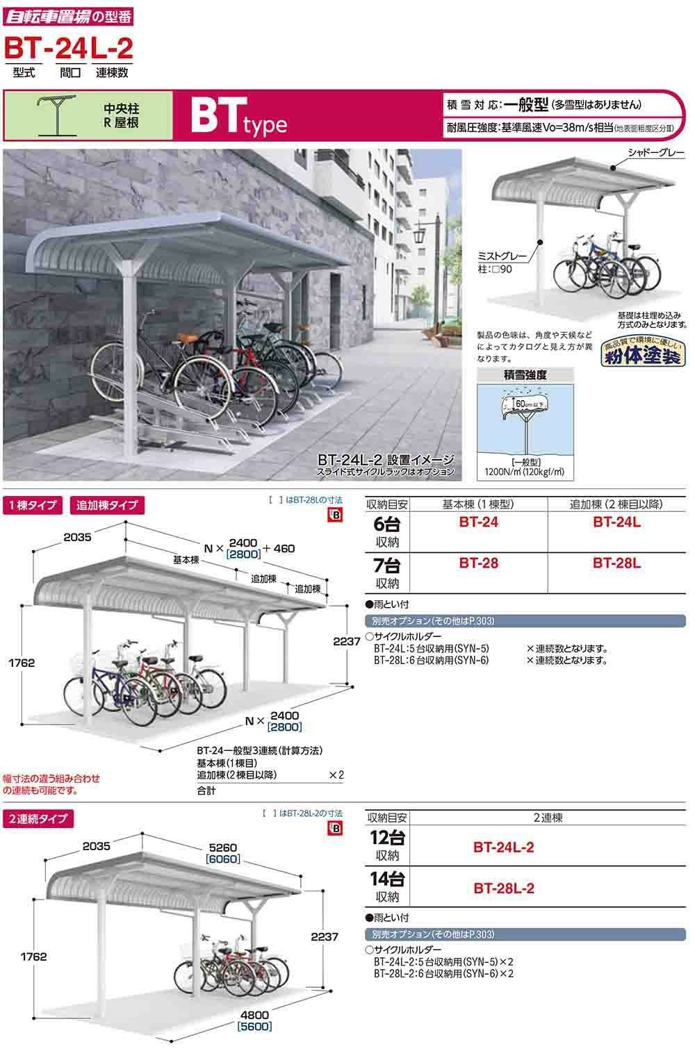 イナバ自転車置場 BT-24L-2 2連棟 BTタイプ 一般型 幅4800×奥行2035×高さ2237