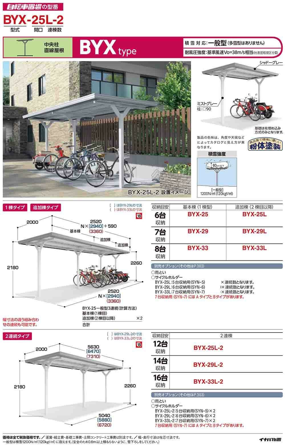 イナバ自転車置場 BYX-25 基本棟(1棟型) BYXタイプ 一般型 幅2260×奥行2700×高さ2260