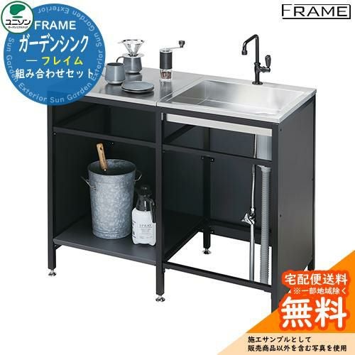 立水栓 水栓柱 ユニソン 【組み合わせ3】ガーデンシンク フレイム ベース基本型+追加型+シンク+パネル+ラック のセット商品 【固定設置タイプ】