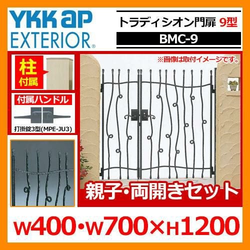 分類 【門扉】【両開き】【親子】【W400】【W700】【H1200】【アイアン調】【トラディシオン門扉】【9型】【BMC-9】【YKKap】