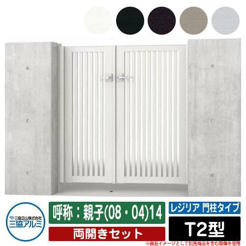 形材門扉 レジリア 門柱タイプ T2型 錠前:内蔵錠(MJN-CT) 両開きセット 呼称:親子(08・04)14