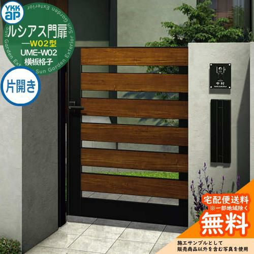 形材門扉 YKKap ルシアス門扉W02型 片開き 門柱仕様 10-16 内開き仕様 UME-W02 複合カラー 横板格子 W1000×H1600(扉1枚寸法)