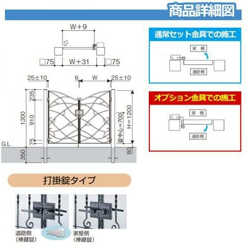 形材門扉 レジリア 門柱タイプ Y1型 錠前:内蔵錠(MJN-CT) 両開きセット 呼称:0612