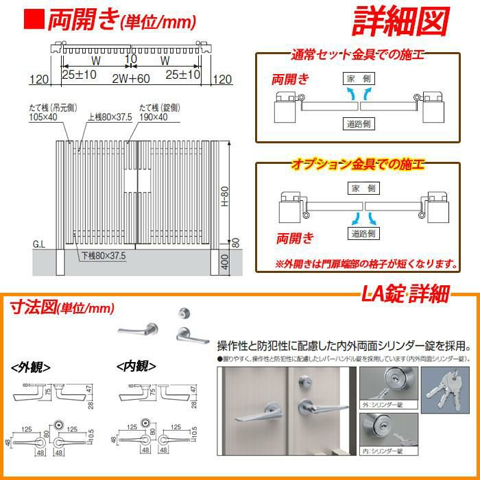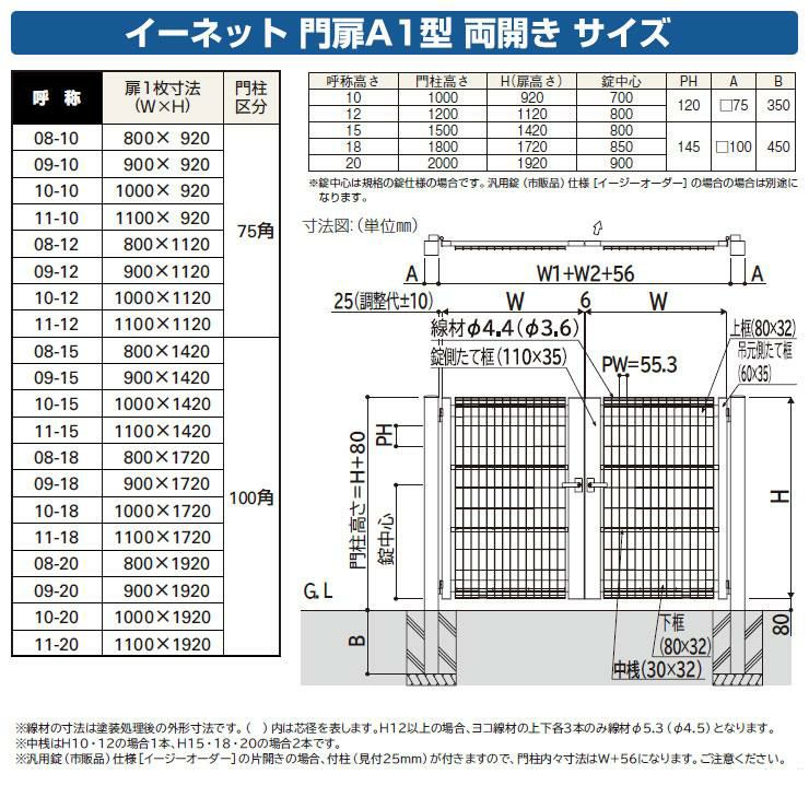 イーネット 門扉A1型 標準タイプ 両開き 門柱仕様 門柱セット 呼称:08-20 W800×H1920(扉1枚寸法)