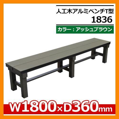人工木アルミ縁台 人工木アルミベンチT型 1836 アッシュブラウン W1800×D360mm